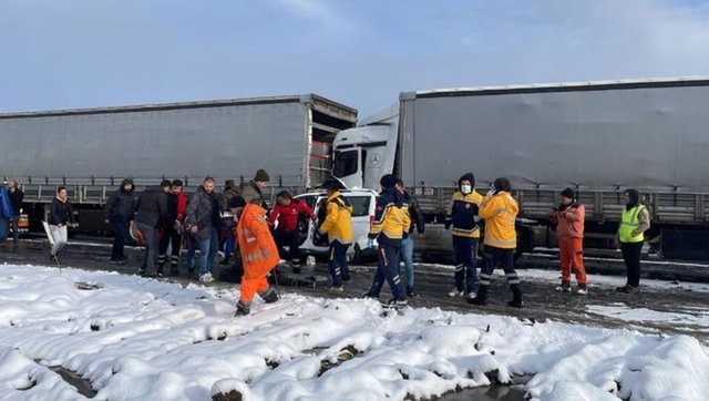 Ekiplerin yaralılara müdahale ettiği kaza nedeniyle otoyolun Ankara istikametinde ulaşım sağlanamıyor. Kar yağışının etkisini azalttığı bölgede, yolun kapalı olması nedeniyle uzun araç kuyruğu oluştu.