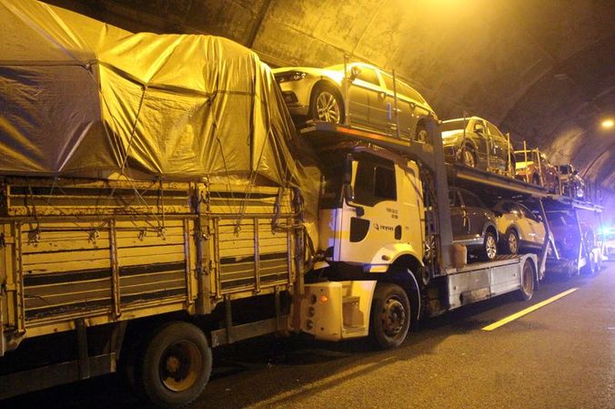 Bolu Dağı Tüneli'nde meydana gelen zincirleme kazada 3 TIR ve 1 kamyonet çarpıştı. 1 kişinin yaralandığı kaza nedeniyle Ankara istikametinde yoğun araç trafiği oluştu. Kazaya karışan bir TIR'daki sıfır kilometre otomobillerden bazıları ise hasar gördü