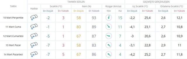 BOLU 5 GÜNLÜK HAVA DURUMU