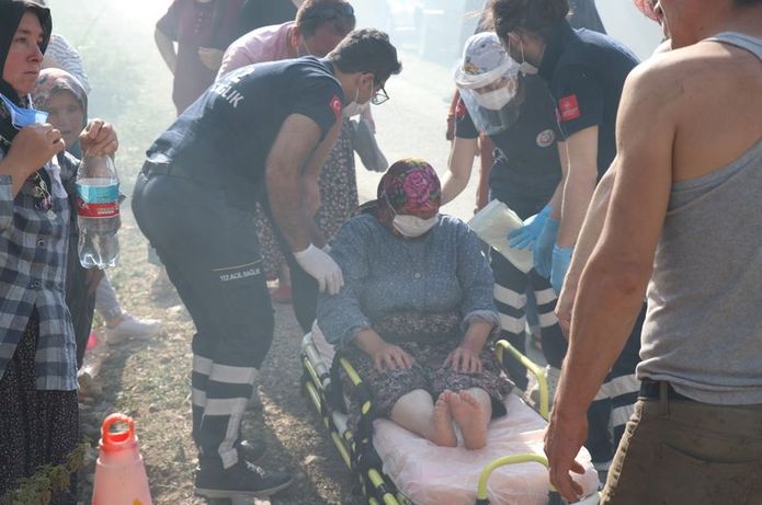 Yangını kendi imkanlarıyla söndürmek isteyen Hatice Bayram’ın alevler arasında kalan ayakları yandı. Oğlu ve gelininin yardımıyla alevlerin arasından kurtarılan yaşlı kadın, yangının yaşandığı bölgeden çıkarıldı. Ayakları kovaya konulan suyun içine sokulan yaşlı kadın, olay yerine gelen 112 Sağlık ekiplerinin ilk müdahalesinin ardından tedavisi için hastaneye götürüldü.
