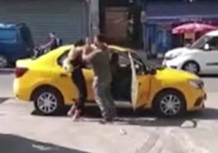 DHA'da yer alan habere göre ikili arasında tartışma çıktı. Tartışmanın büyümesi ile E.H.İ., eşi C.İ.'yi darp etti. O anlar, çevredekilerin cep telefonu kamerasına yansıdı.