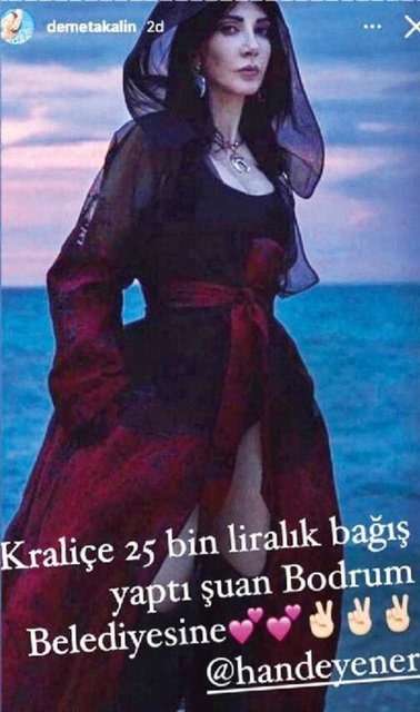 Popçu Demet Akalın, ünlü dostlarından da bağış talebinde bulundu. Akalın'ın yardım çağrısına yıllardır bir dargın bir barışık olduğu meslektaşı Hande Yener, kayıtsız kalmadı. Demet Akalın, daha önce Yener'in bağışını sosyal medya hesabından, "Kraliçe Bodrum Belediyesi'ne 25 bin liralık bağış yaptı." notuyla duyurdu.