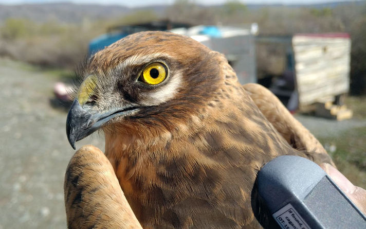 Araştırma ekibince halkalanan, atmacagiller familyasından ve yırtıcı bir tür olan bozkır delicesi, GPS takıldıktan sonra doğal ortamına salındı.