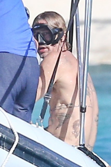 Pitt, Red Hot Chilli Peppers grubu gitaristi ve oyuncu Flea'nın da bulunduğu bir grup arkadaşıyla birlikte Karayipler'deki Turks ve Caicos Adaları'nda güneşin keyfini çıkarırken görüntülendi.
