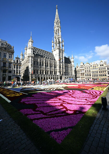 Belçika'nın başkenti Brüksel'in tarihi Grand Place Meydanı'na çiçeklerden yapılan halı döşendi
