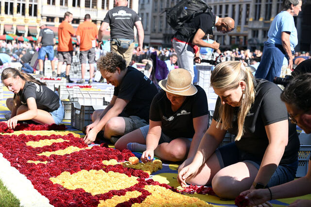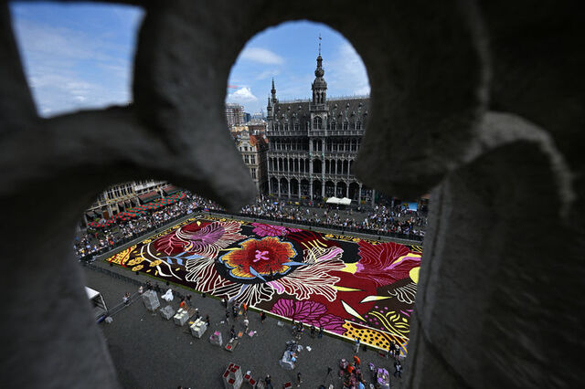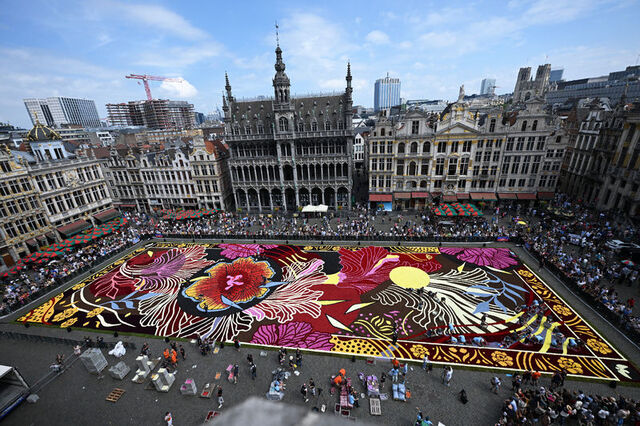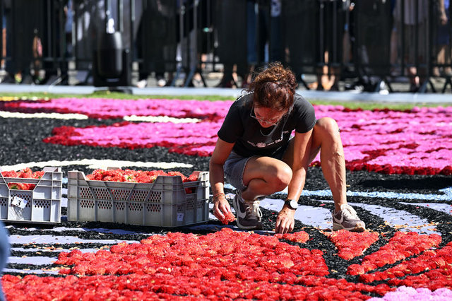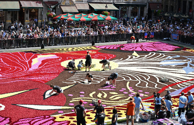 Brüksel'in merkezindeki tarihi meydanda bulunan çiçek halı, 18 Ağustos'a kadar görülebilecek.