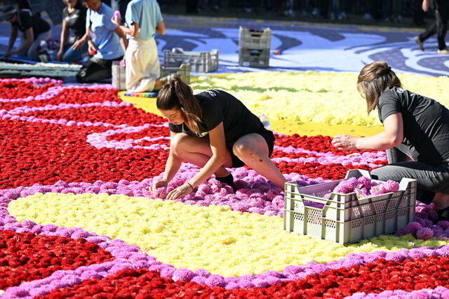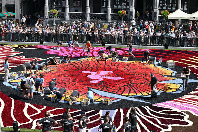 Brüksel'in UNESCO Dünya Miras Listesi'ndeki Grand Place Meydanı, dalya çiçekleriyle donatılan dev halıya 23'üncü kez ev sahipliği yapıyor.