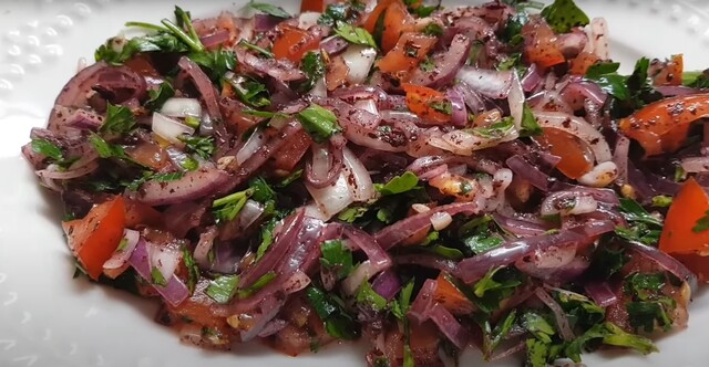 Soğanları soyup yıkadıktan sonra ince uzun olarak doğrayın. Üzerine biraz tuz ekleyip soğanı elinizde sıkın ve acısı alın. Daha sonra maydanozları ince ince kıyın ve bu sırada domateslerinizi küp küp doğrayın.