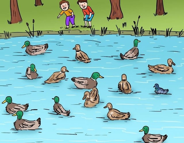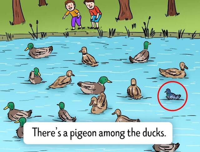 Cevap: Ördeklerin arasına gizlenmiş bir güvercin var.