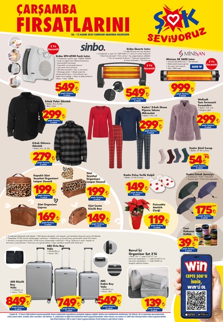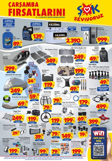 ŞOK, 6 Kasım ile 12 Kasım arasında geçerli olacak aktüel kataloğun yayınladı. Yüzlerce ürüne yer verilen aktüelde bu hafta başı otomobil aksesuarları çekiyor. Bunun dışında aktüelde; bavul seti, fanlı ısıtıcı, buzdolabı çeşitleri, dikey süpürge ve mobilya geliyor.