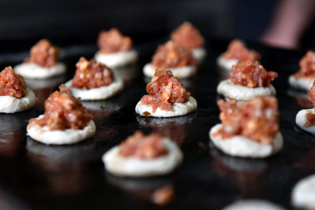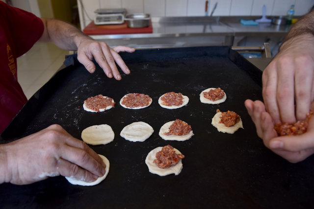 "Bu aşamanın ardından hamur hafifçe açılır ve üzerine fındık görünümünü sağlayacak şekilde kıyması konulur. Ardından kıyma hafif şekilde hamurun üstüne yayılarak, fırına verilir. 10-15 dakika içerisinde pişirimi tamamlanan fındık lahmacununu servis yaparız."