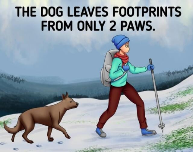 Cevap: Köpek yalnızca 2 patilik iz bırakıyor, 4 olması gerekirdi.