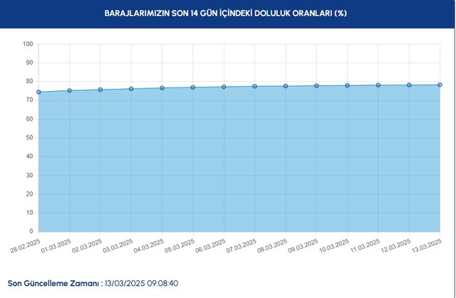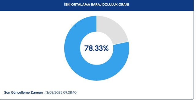 Baraj doluluk oranı bugün yüzde 78,33 oldu.