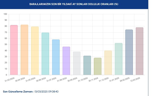 İSKİ’nin son raporuna göre 13 Mart 2025 barajlardaki doluluk oranları: