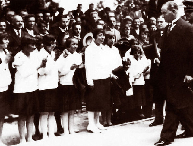 Atatürk, 5 Haziran 1928'de İstanbul Tuzla'ya gelişinde kız öğrenciler tarafından karşılanmıştı.