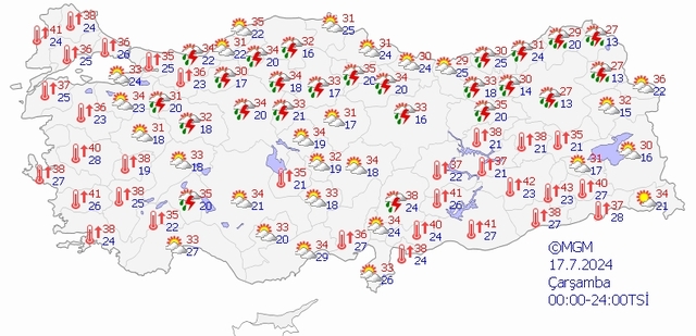 Türkiye, kavurucu sıcaklardan geçiyor. 17 Temmuz Çarşamba günü sıcaklıklar 30 derece civarında seyrederken; meteoroloji daha da yükseleceğine dair uyarı veriyor! Bazı şehirlerde yağmur yağsa da sıcaklıklar aynı şekilde devam edecek.