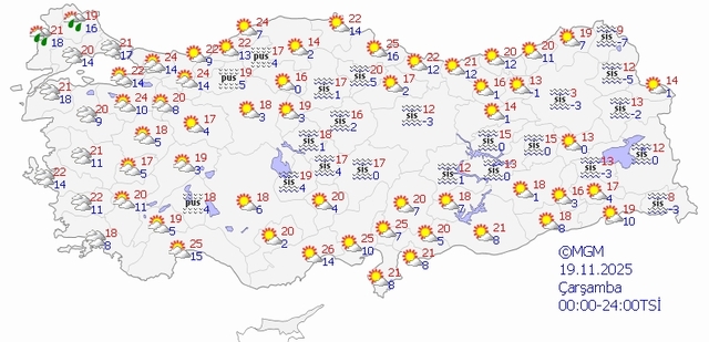Bugün hava nasıl olacak, sorusu Meteoroloji Genel Müdürlüğü (MGM) tarafından yayımlanan hava durumu tahminleri ile yanıt buldu. Batı Trakya haricinde yurt genelinde yağış beklenmiyor. Sıcaklıkların mevsim normallerinin üzerinde olması bekleniyor. İşte 19 Kasım 2025 İzmir, Ankara, İstanbul hava durumu tahminleri...