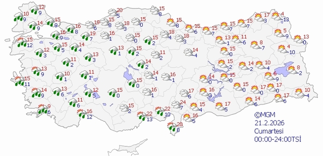Bugün hava nasıl olacak, sorusu Meteoroloji tarafından yayımlanan hava durumu raporu ile yanıt buldu. Yurdu etkileyecek yeni yağışlı sistemin soğuk olduğunu söyleyen Çelik, "Pazar günü için ülke genelinde sıcaklıkların 4 ila 6 derece azalacağını tahmin ediyoruz." açıklamasını yaptı. İşte 21 Şubat Cumartesi Meteoroloji ile İstanbul, İzmir, Ankara hava durumu tahminleri...