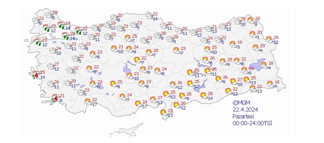 22 NİSAN 2024 YURT GENELİNDE HAVA DURUMU