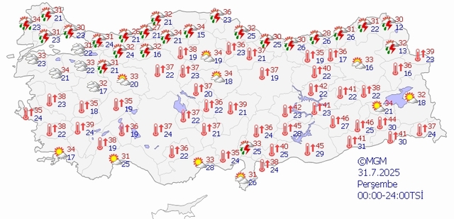 Sağlık Bakanlığı Halk Sağlığı Genel Müdürü Muhammed Emin Demirkol, mevsim normallerinin üzerinde seyreden sıcaklıklara, ilişkin risk altındaki gruplar için uyarıda bulundu. Meteoroloji'den yapılan son hava durumu tahminlerine göre; önümüzdeki günlerde hava sıcaklıkları mevsim normalleri üzerinde seyretmesi bekleniyor. Peki, "Bugün hava nasıl olacak?" İşte 31 Temmuz Perşembe İstanbul, İzmir, Ankara hava durumu tahminleri...