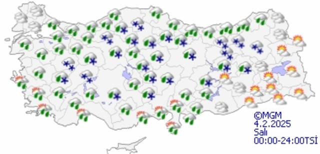 Meteoroloji Genel Müdürlüğü 4 Şubat Salı gününe ilişkin hava durumu raporunu yayınladı. Yurt genelinde sıcaklıklar Sibirya kökenli soğuk hava dalgası nedeniyle 6-12 derece düşecek. Bugünden itibaren kuzey ve batı kesimlerde, 5 Şubat Çarşamba günü ise iç ve doğu kesimlerde soğuk kendisini iyiden iyiye hissettirecek. Peki, "Bugün hava nasıl olacak?" İşte 4 Şubat MGM ile İstanbul, Ankara, İzmir hava durumu tahmini...