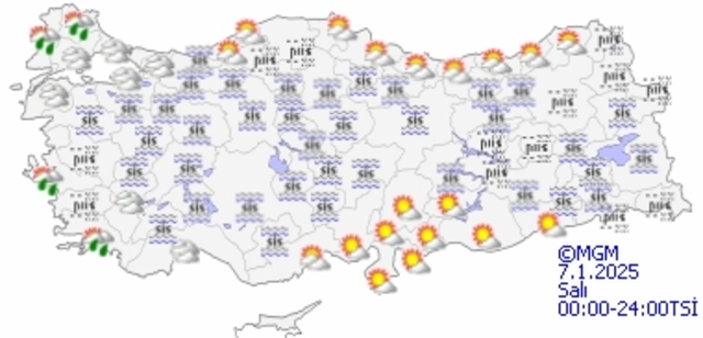 Meteoroloji Genel Müdürlüğü 7 Ocak Salı gününe ilişkin hava durumu raporunu yayınladı. Yeni haftanın gelişiyle birlikte ülkemizin kuzey, iç ve batı kesimlerinin parçalı yer yer çok bulutlu, Tekirdağ'ın batısı, Edirne ve Kırklareli çevreleri ile Çanakkale, İzmir, Muğla ve Aydın'ın kıyı kesimlerinin aralıklı sağanak yağışlı, diğer yerlerin az bulutlu ve açık geçeceği tahmin ediliyor. İşte 7 Ocak 2025 Salı MGM ile İstanbul, Ankara, İzmir hava durumu tahmini