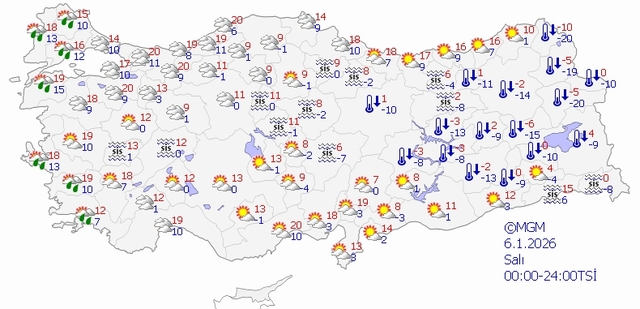 Meteoroloji Genel Müdürlüğü tarafından yapılan tahminlere göre, bugün ülke genelinde parçalı ve çok bulutlu bir hava hakim olurken, Marmara ve Ege kıyılarında yağmur geçişleri görülecek. Öte yandan geçtiğimiz hafta yurt genelinde hakim olan kar yağışlarının bu hafta devam edip etmeyeceği merak konusu oldu. Peki, "Bugün hava nasıl olacak? İstanbul'a kar yağacak mı?" İşte Meteoroloji ile 6 Ocak Salı hava durumu tahminleri...