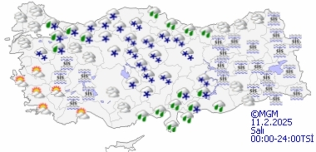 Meteoroloji Genel Müdürlüğü tarafından yapılan tahminlere göre: Ülkemiz genelinin parçalı ve çok bulutlu, Marmara’nın doğusu, Doğu Akdeniz, İç Anadolu'nun kuzey ve doğusu, Batı ve Orta Karadeniz, Doğu ve Güneydoğu Anadolu'nun batısının yağışlı geçeceği tahmin ediliyor. Yağışların; Akdeniz ve Orta Karadeniz kıyıları ile Şanlıurfa çevrelerinde yağmur, yağış alan diğer yerlerde karla karışık yağmur ve kar şeklinde görülmesi bekleniyor. Amasya ve Kayseri çevreleri ile Samsun'un iç kesimleri, Yozgat'ın doğu, Tokat ve Sivas'ın batı ilçelerinde görülecek kar yağışlarının yerel kuvvetli olması bekleniyor. İç ve doğu kesimlerde buzlanma ve don olayı ile birlikte pus ve yer yer sis görüleceği tahmin ediliyor. Doğu Karadeniz’in iç kesimlerinin yüksekleri ile Doğu Anadolu’nun yüksek ve dik yamaçlarında çığ tehlikesi bulunmaktadır.