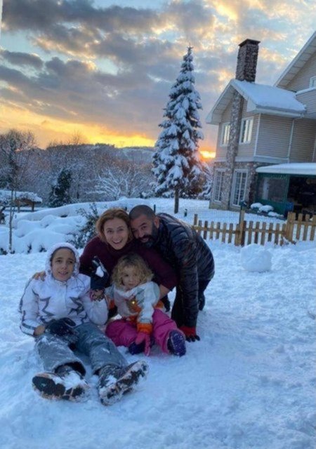 Oyuncu, eşi Bülent Şakrak oğlu Ali ve kızı ile aile arasında pasta kesmişti.