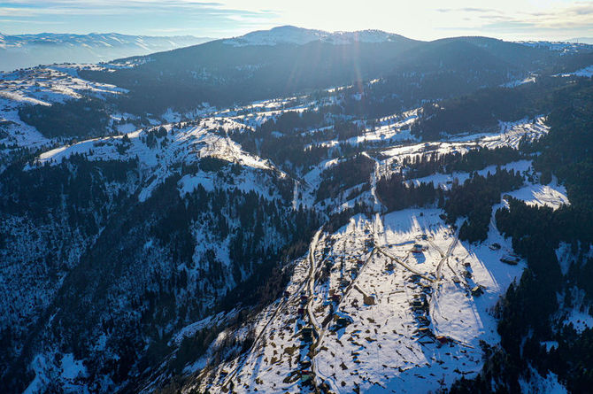 Trabzon'a en yakın yayla konumundaki Akçaabat ilçesinin 1600 rakımlı Hıdırnebi Yaylası, kışa özgü manzaralarıyla görsel şölen sunuyor