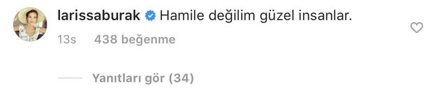 "Hamile misin?", "Hayırlı olsun" gibi yorumların gelmesinin ardından Gacemer, takipçilerine, "Hamile değilim güzel insanlar" açıklamasını yaptı.