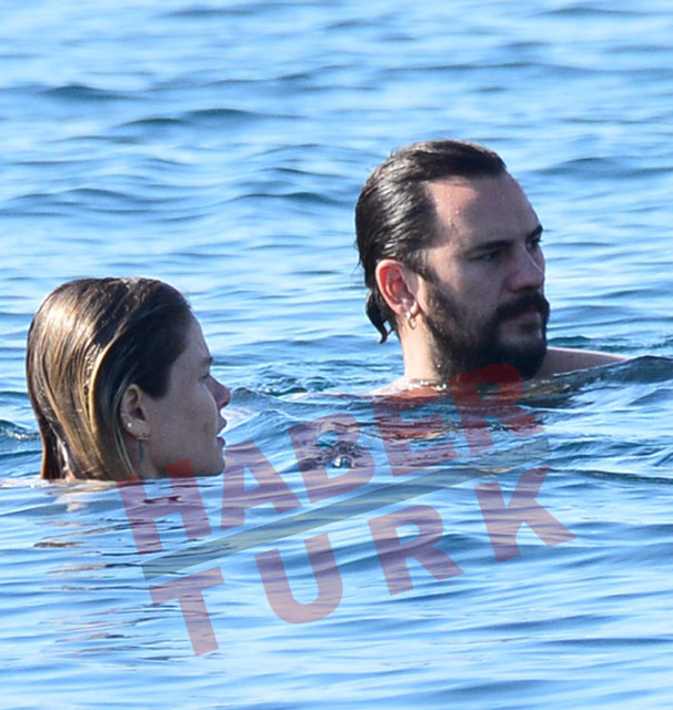 Çifti, kaldıkları Gölköy’deki otellerinin iskelesinden denize girerken görüntülendi.