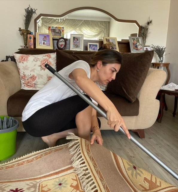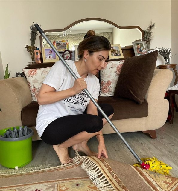 Gitmişken annesinin evini de temizleyen Burcu Kara, o anlarda çekilen fotoğraflarını da sosyal medya hesabı üzerinden takipçileriyle paylaştı.