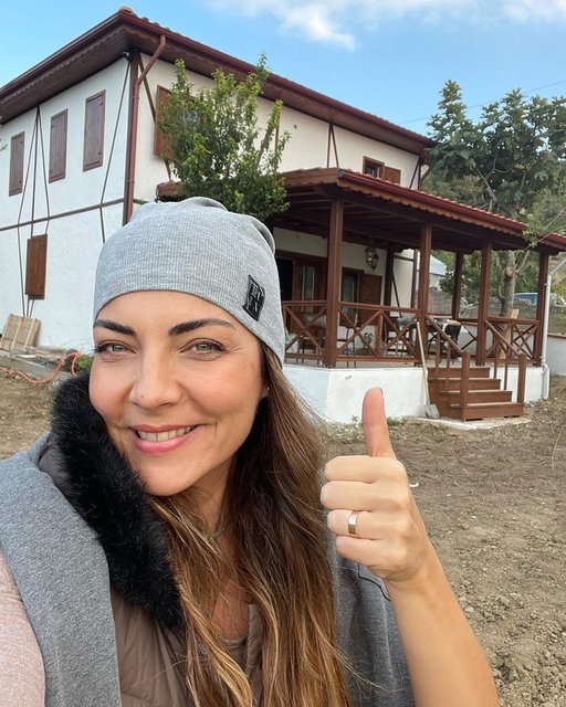 2016'da yönetmen Fırat Parlak ile nikah masasına oturan 41 yaşındaki oyuncu, büyüdüğü köy evini yeniden yaşanabilir hale getirmişti.