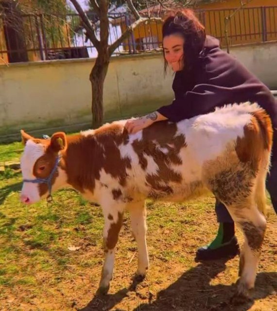 Ceylan Ertem, ineğe sarılıp gülümseyerek verdiği bu pozuna da, "Bugün böyle geçiyor." ifadelerini not düştü.