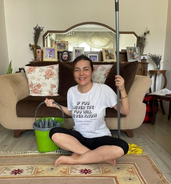 Burcu Kara, "Can ile annemleri ziyarete geldik. Gelmişken her şeyle ilgilenmeye çalışıyorum. Bu fotoğrafı da annem çekmiş. 'Madem öyle, ben de poz vereyim' dedim en doğal halimle" demişti.