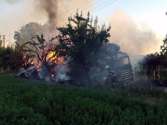 Dorsesindeki samanı bir işletmeye boşaltmak isteyen sürücüsünün ismi öğrenilemeyen 15 AAV 842 plakalı TIR'da yüklü saman, elektrik tellerine temas edince yangın çıktı. Büyüyen alevler TIR'ı sararken, olayı görenler durumu itfaiye ekiplerine haber verdi.