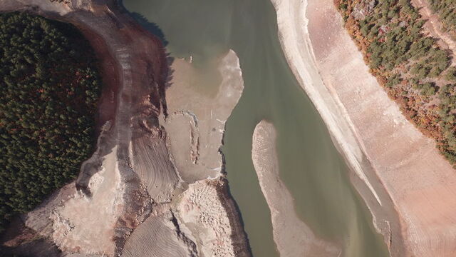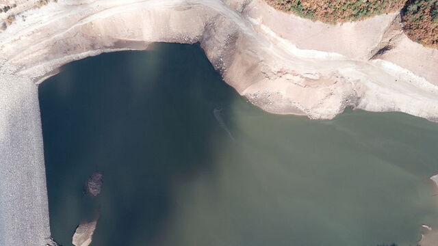 Ekim ayında doluluk oranı yüzde 2 olarak kaydedilen Nilüfer Barajı'nın dibindeki toprakta oluşan derin çatlaklar, drone'la görüntülendi. Suyla dolu olması gereken Nilüfer Barajı'nda artık yürünebiliyor.