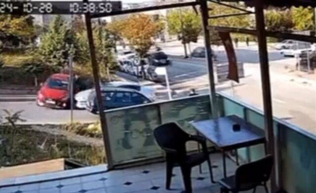 Bursa'da aracıyla yokuş çıktığı sırada fenalaşan sürücü ayağını gazdan çekince, geri geri hareket etmeye başladı. Süratle gelen otomobil önce karşıya geçmek isteyen yayaya ardından da dönüş yapan otomobile çarptı. O anlar kameraya yansırken, otomobilin çarptığı kişi hafif yaralandı.