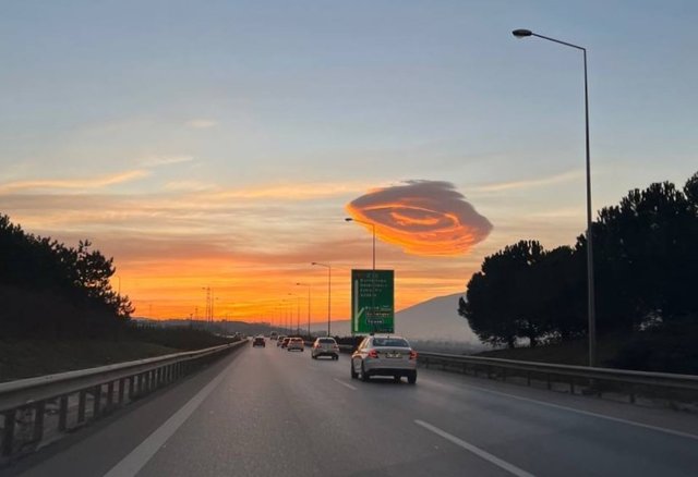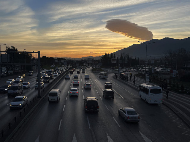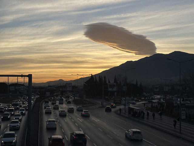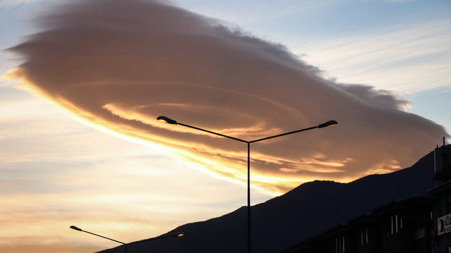 Bursa semalarında sabah saatlerinde mercek bulutu görüldü. UFO'ya benzetilen bulut, civardaki vatandaşlar tarafından cep telefonuyla kaydedildi