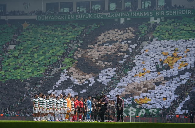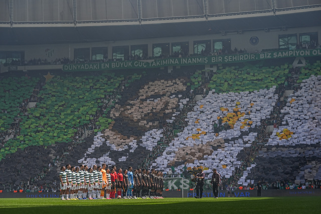 Kulüp Başkanı Enes Çelik'in yer aldığı koreografide, Bursaspor'un Süper Lig, 1. Lig, 2. Lig ve 3. Lig'de kazandığı şampiyonluk kupaları resmedildi.