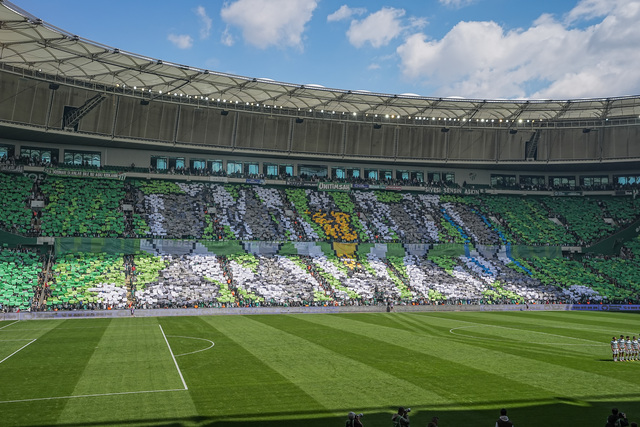 Teksas Taraftar Grubu, yaklaşık 40 bin kartonla stadın büyük bölümünü kapsayan bir koreografi hazırladı.