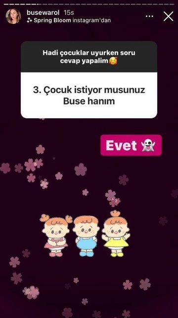 Varol ayrıca, bir takipçisinin "Üçüncü çocuk istiyor musunuz?" sorusuna, "Evet" yanıtını verdi.