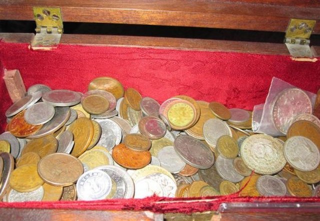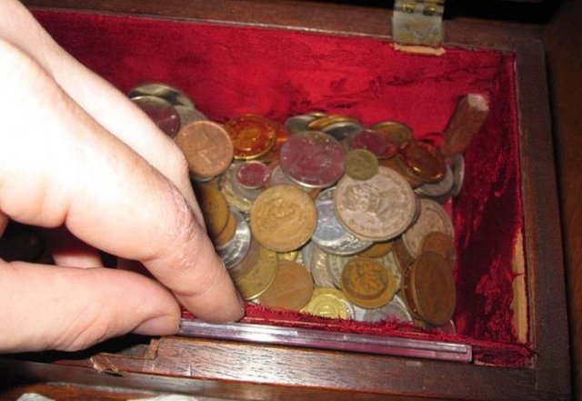 Kutunun içinden 1800'lü yıllarına ait bir sürü bozuk para çıktı.