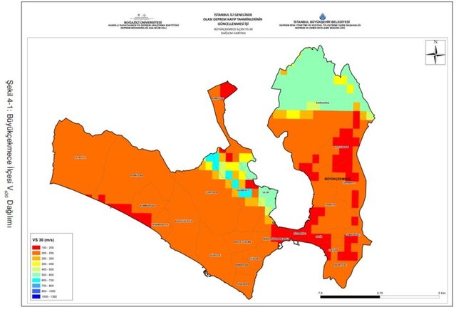 Buna göre, İstanbul'da 7,5 büyüklüğünde meydana gelen bir depremde oluşabilecek hasarlar ve Büyükçekmece'nin en riskli yerleri saptandı. Büyükçekmece orta riskli deprem bölgesi olarak biliniyor.