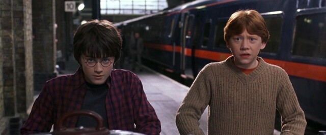 (Harry ve Ron, Sırlar Odası filminde King's Cross İstasyonunda.)