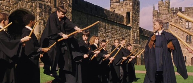 (Felsefe Taşı filminden Alnwick Kalesi bahçesinde çekilen uçuş dersleri.)