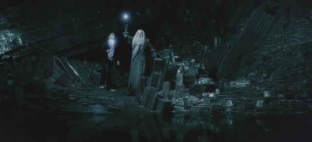 (Harry ve Dumbledore, Melez Prens filminde hortkuluk yok ediyor.)
