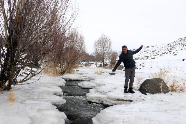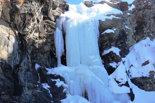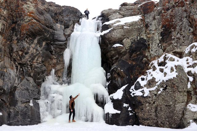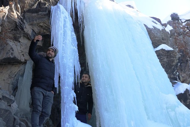 Ağrı'da dondurucu soğukların etkisiyle tamamen donan Aşağı Toklu Şelalesi ve deresinde, güzel görüntüler oluştu