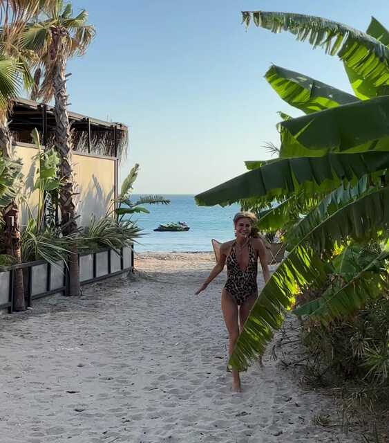 Çağla Şikel, leopar desenli mayosuyla kumların üstünde koştuğu bir videoyu sosyal medya hesabından takipçileriyle paylaştı.